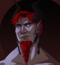 Faerun/ Baldur's Gate 3NAME: Raserei Verfallen (He who falls to rage)GENDER: MaleSEXUALITY: PansexualHEIGHT: 6'5AGE: 34WEIGHT: 380lbsHAIR COLOR: Deep redEYE COLOR: Pale blue (black sclera when raging.) Missing right eye.CLASS: Barbarian (WILD HEART. BEAR AND STAG HEART)Raserei’s bloodline does not come from devils or more to the point Aesmodeous. The only thing the tiefling, or maybe demon spawn is more accurate, will say is his blood lies with the Abyss. He says little more, either because he does not know or does not wish to tell.Exploits of the striding giant tiefling with flaming hair have popped up, and some who have worked with him have sparked a few theories, from his grandfather being a powerful Balor, to his grandfather being one of the demon lords themselves, or a more bold and one that seems to get the spawn to stiffen, that the Abyss is somehow his blood tie. As the plane is alive itself and who knows what profane magic could have led to Raserei’s creation. After all he isn’t saying.All he knows is his life has been plagued by mistreatment and abuse.